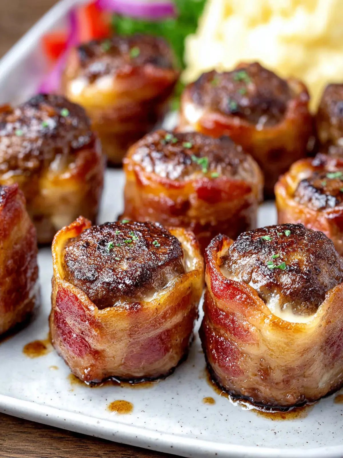 Delicious and unique meatloaf cupcakes wrapped in crispy bacon, perfect for dinner or a special occasion.
