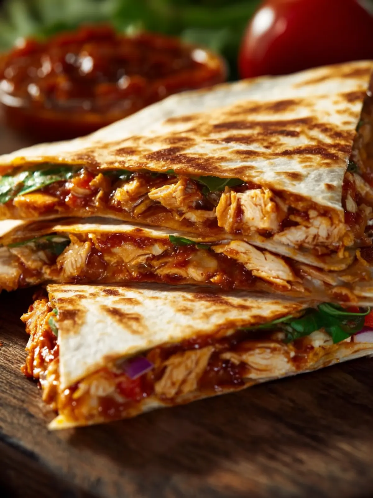 Consider adding slices of fresh mango or pineapple into your BBQ chicken quesadilla. This fruity touch balances the smoky BBQ flavors and adds a refreshing twist that makes each bite a unique experience.