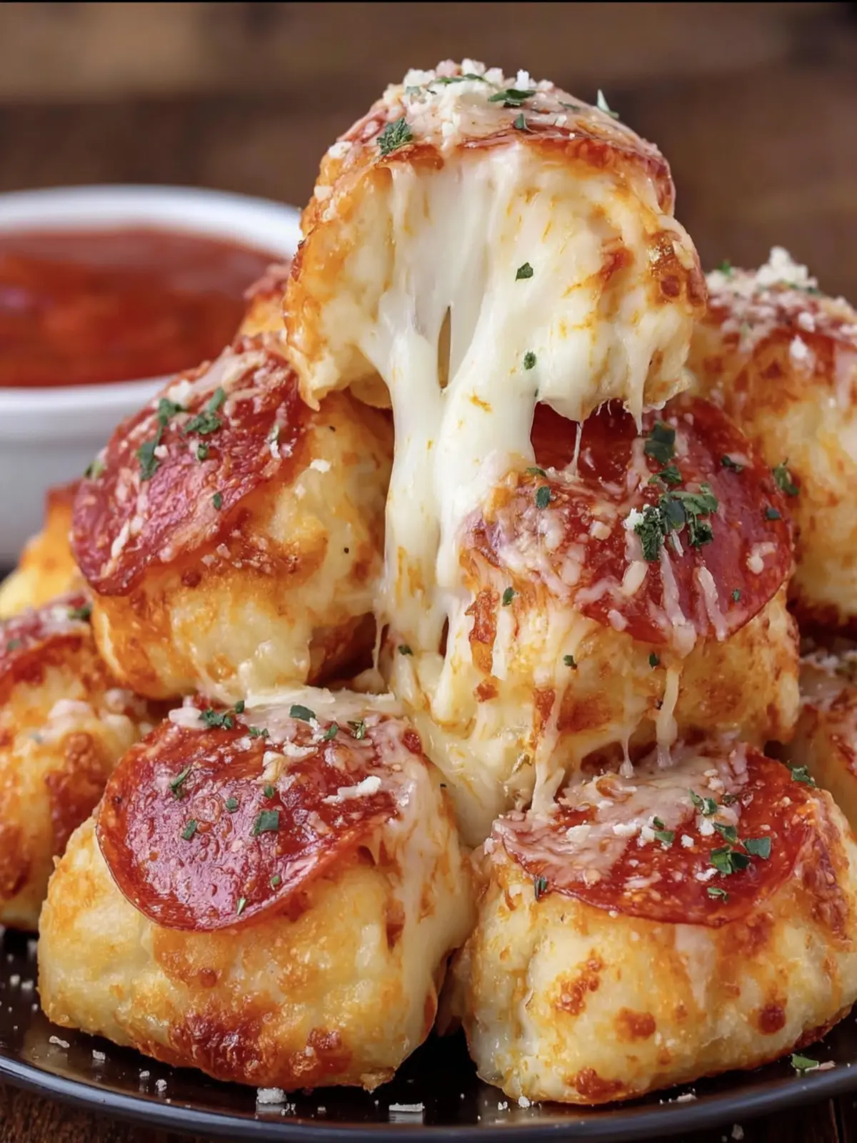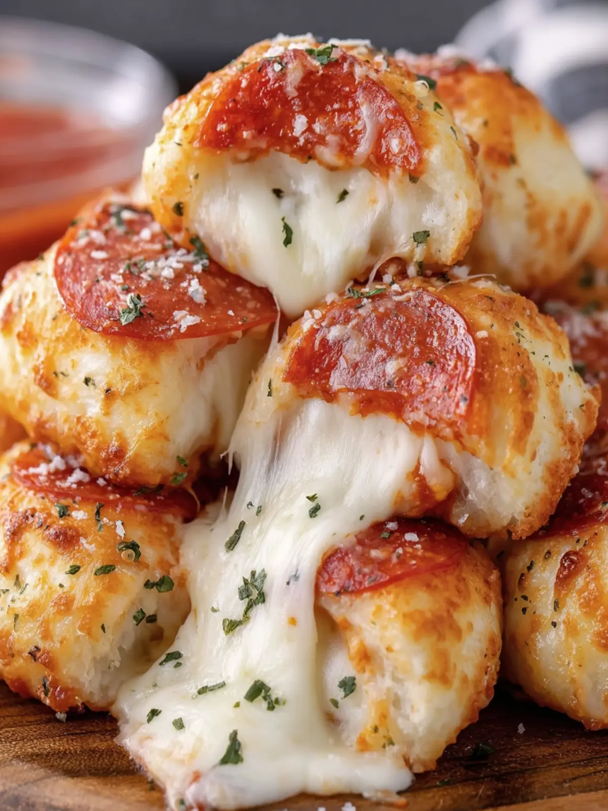 Enjoy exploring the joy of cheesy pepperoni pizza bites!
