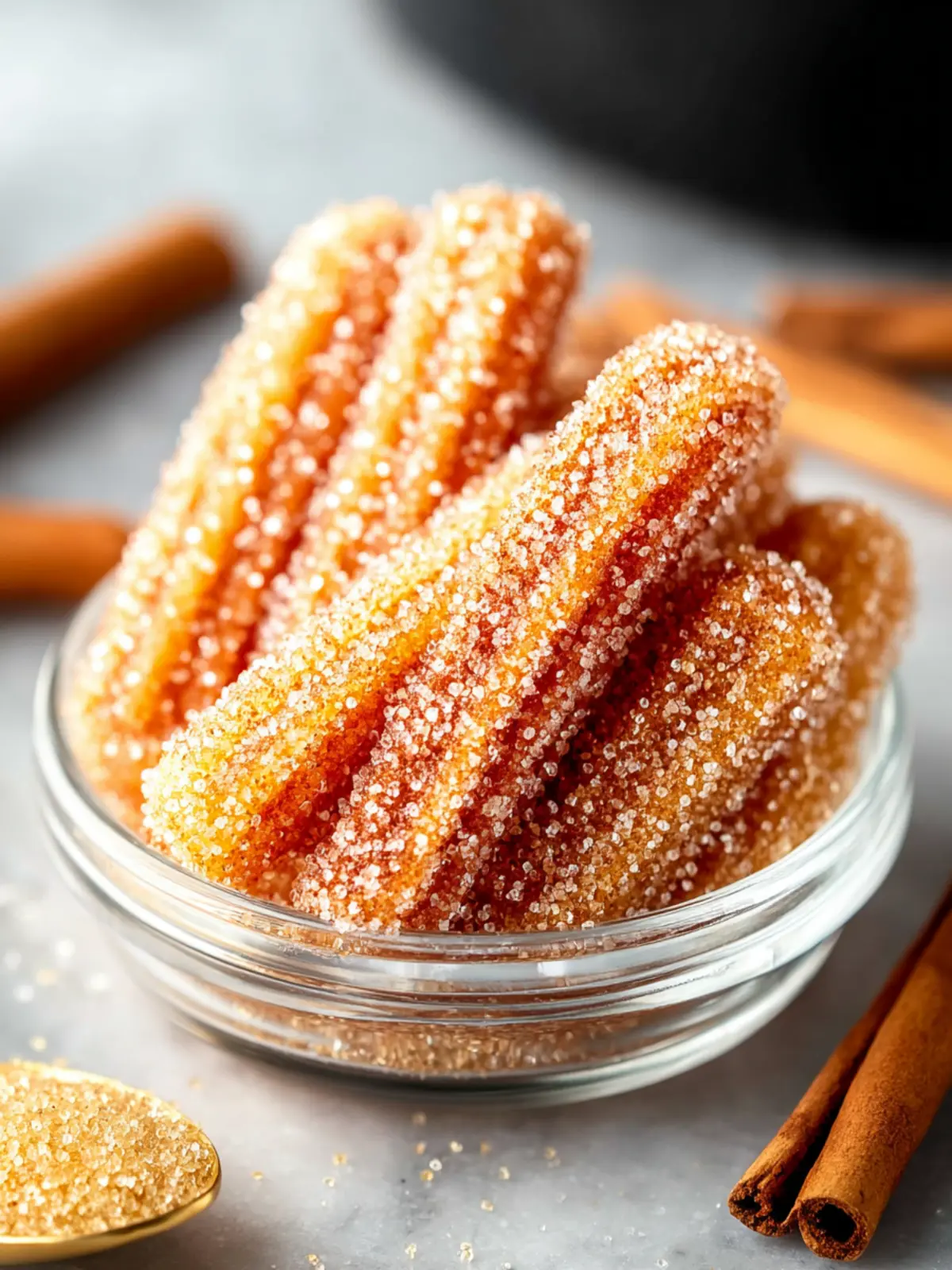 Pair with Coffee or Tea: Enjoy your treats with a steaming cup of coffee or herbal tea. The warmth of the beverage beautifully complements the sweetness of the cinnamon sugar, creating a comforting pairing.
