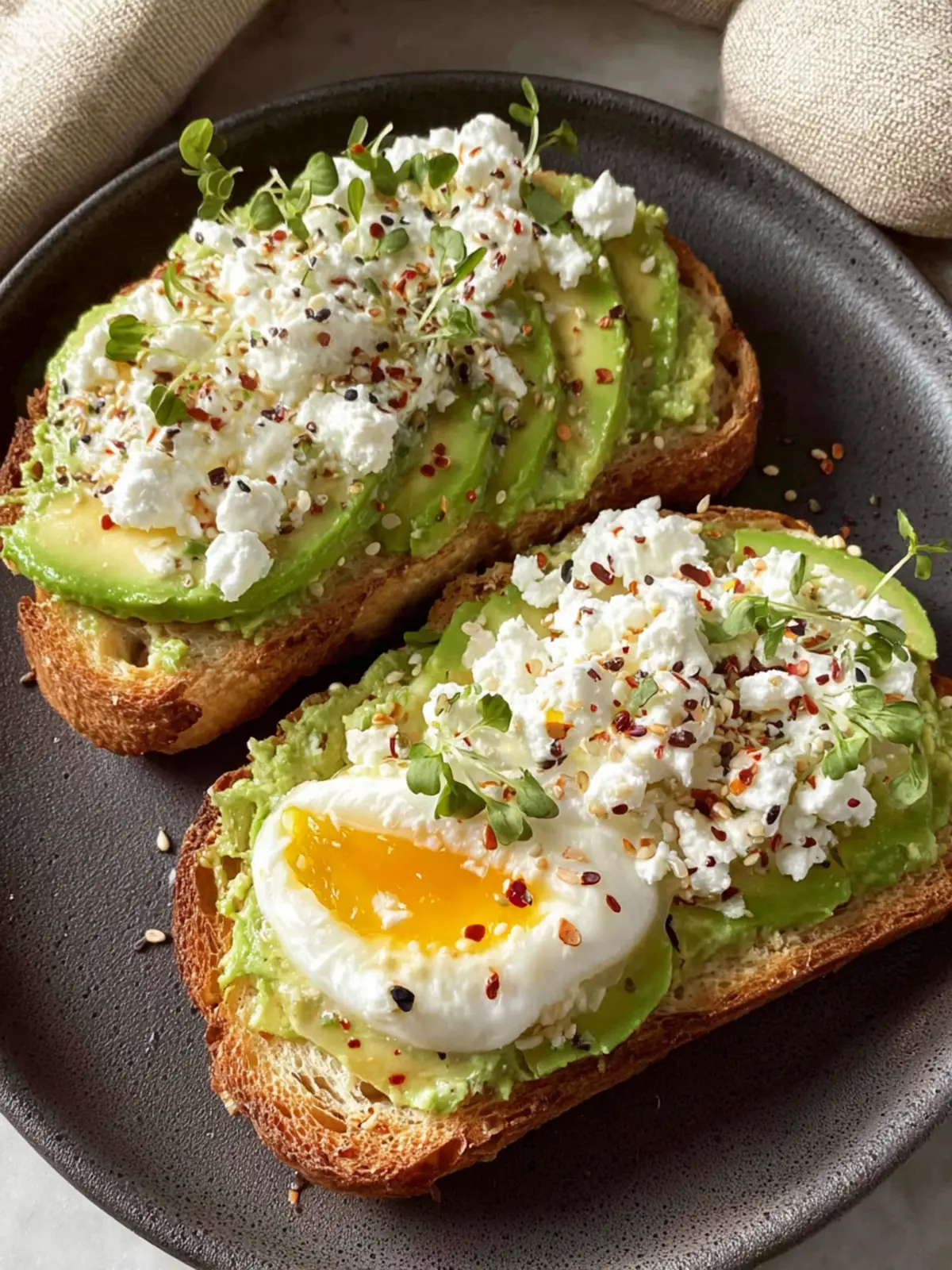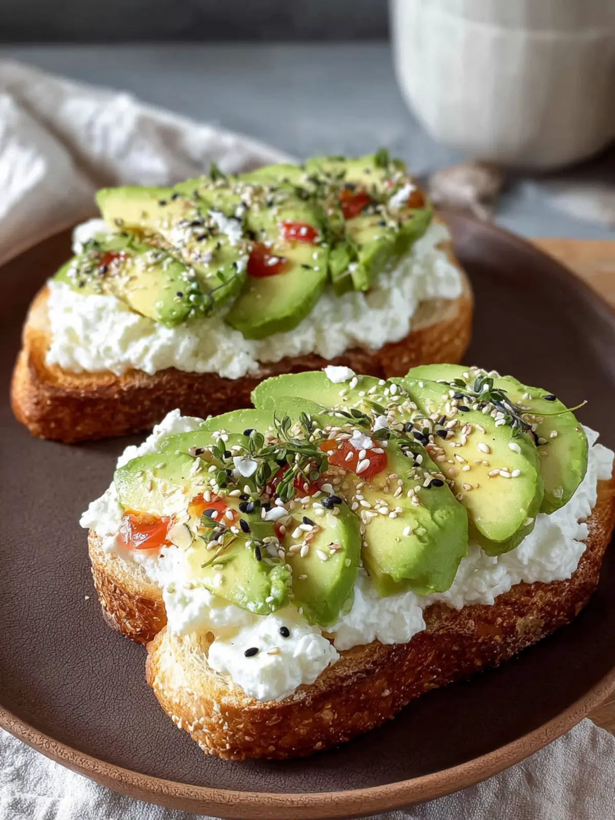 Egg on Top: For a heartier version, consider adding poached or fried eggs. The runny yolk mingling with the cottage cheese and avocado creates a luscious sauce that elevates your toast game even further.