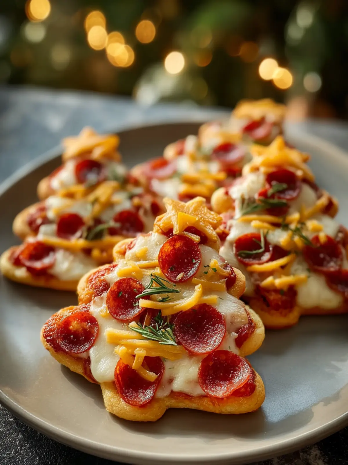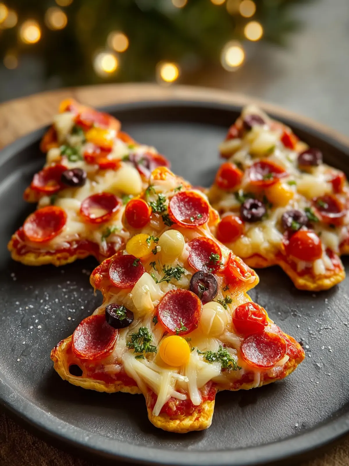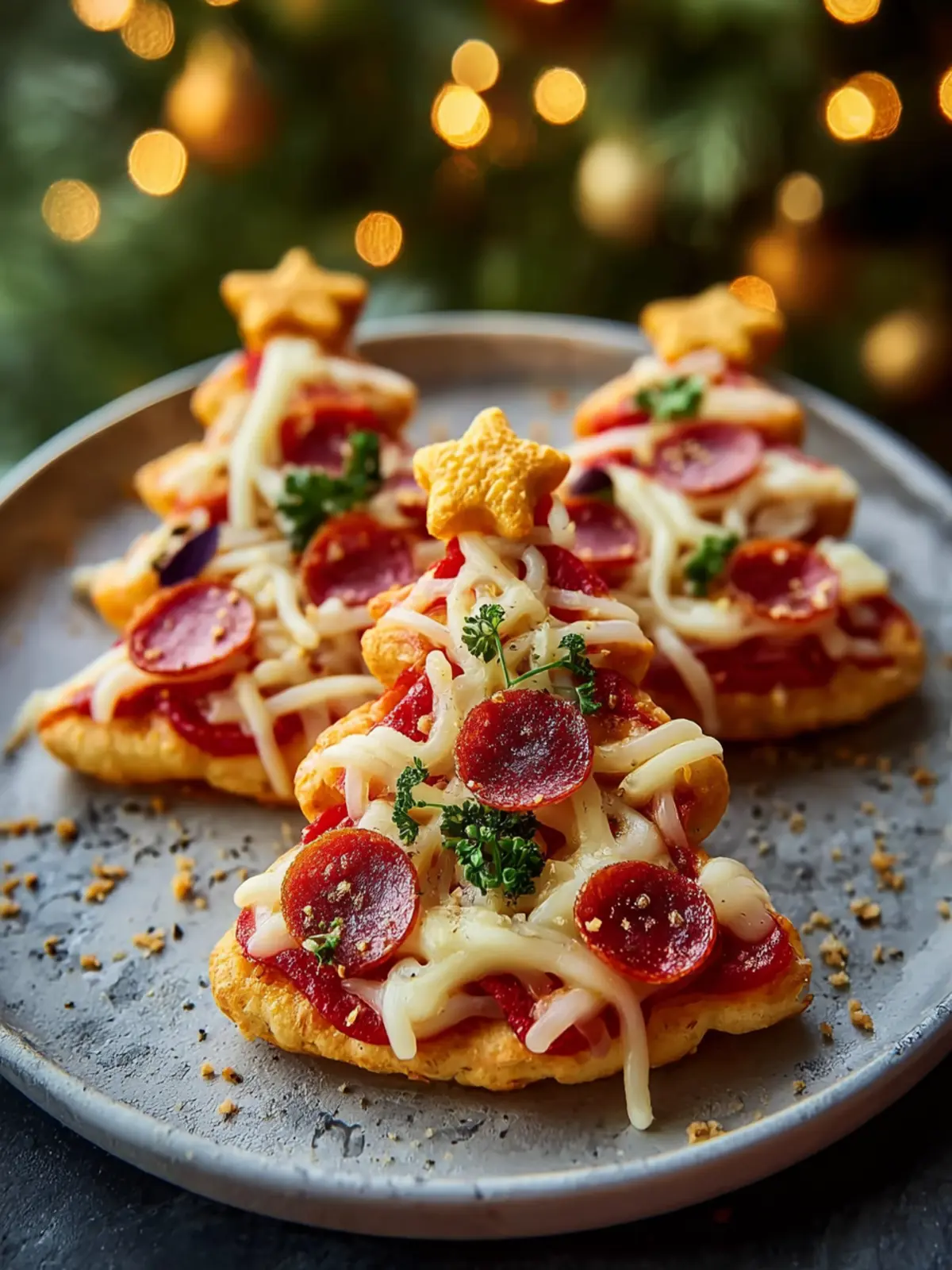 Delicious and festive mini pizzas shaped like Christmas trees, perfect for holiday gatherings!