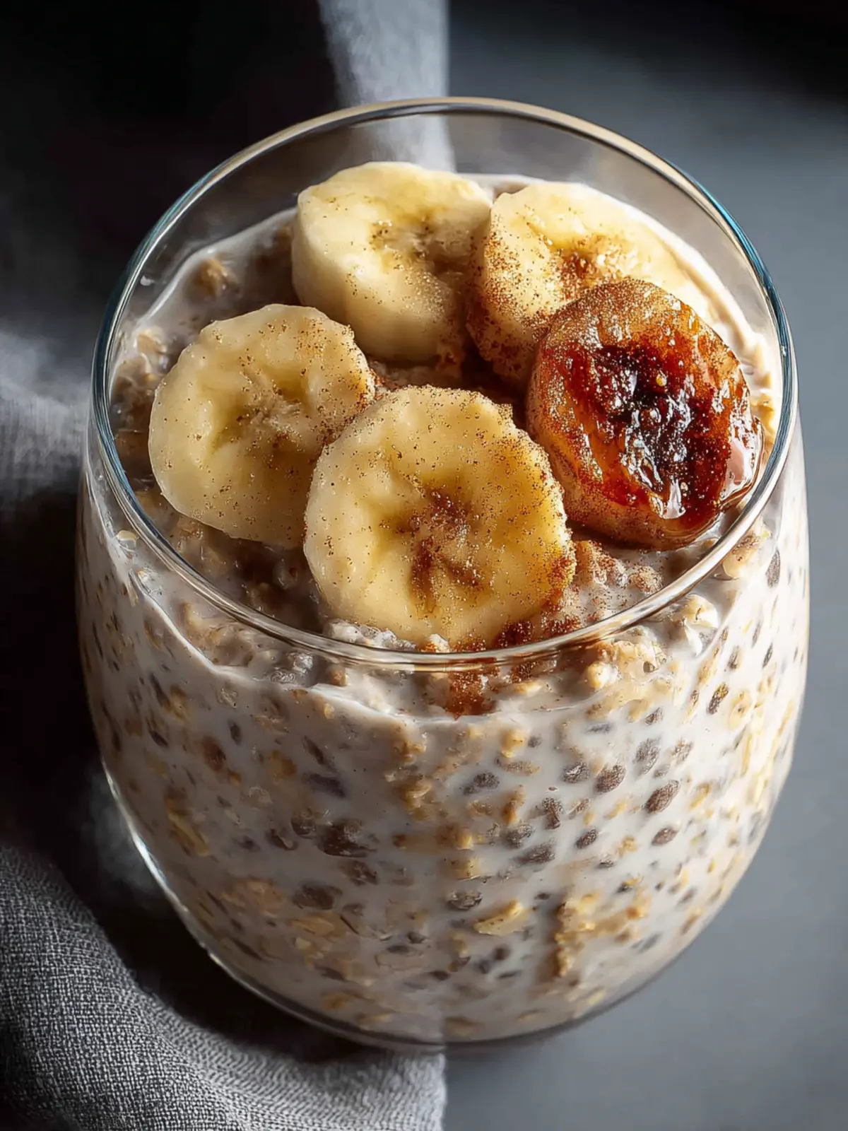 A delicious and nutritious overnight oats recipe featuring banana, chia seeds, and almond milk.