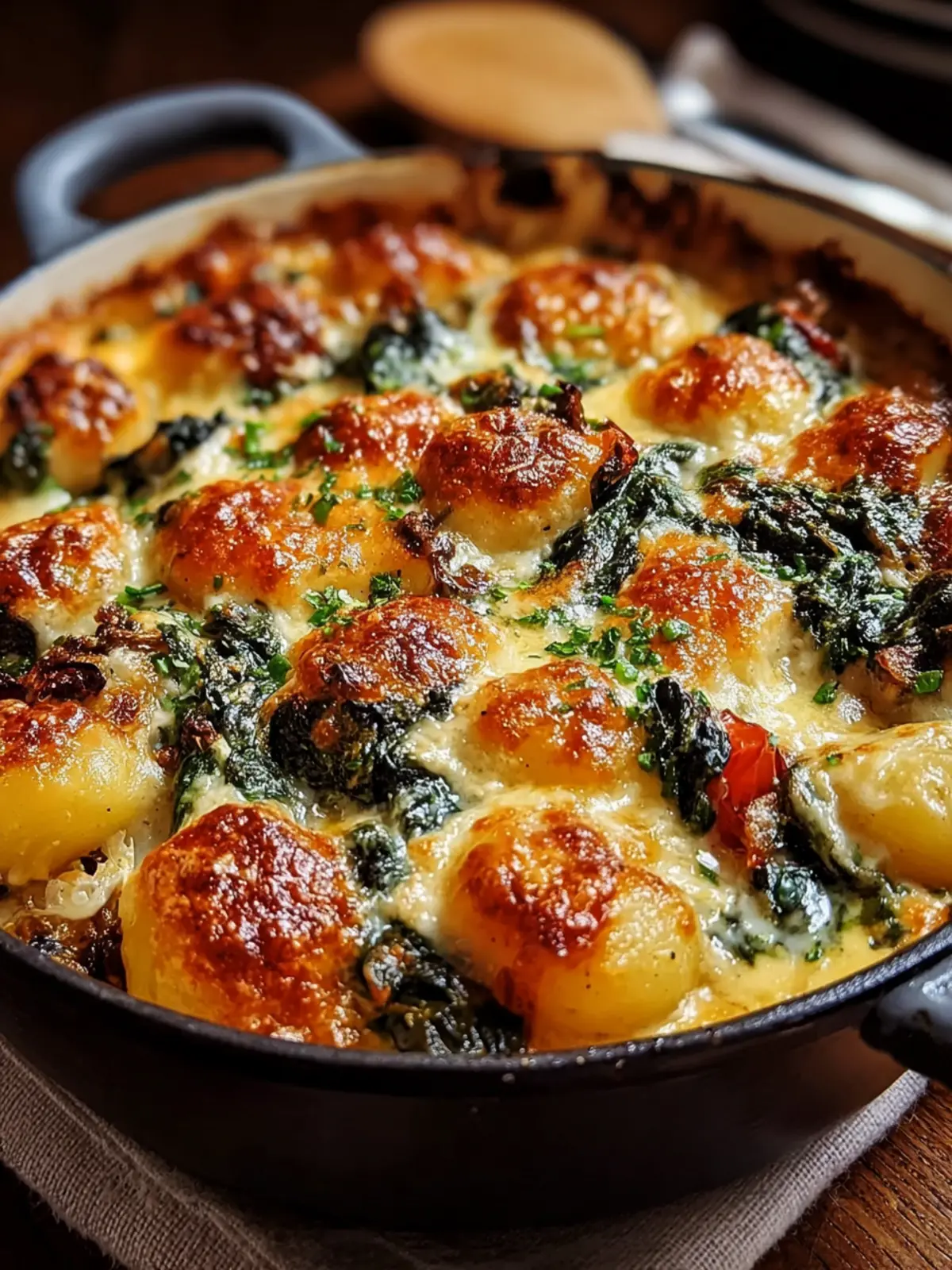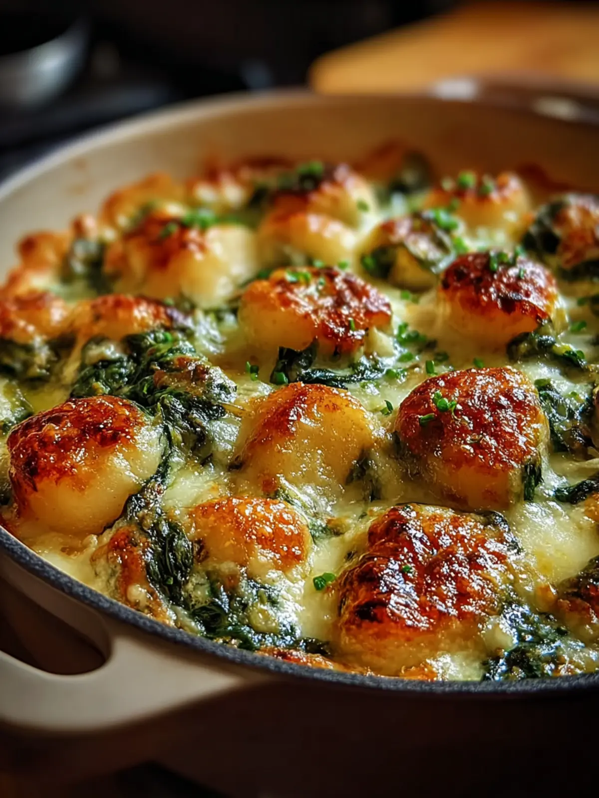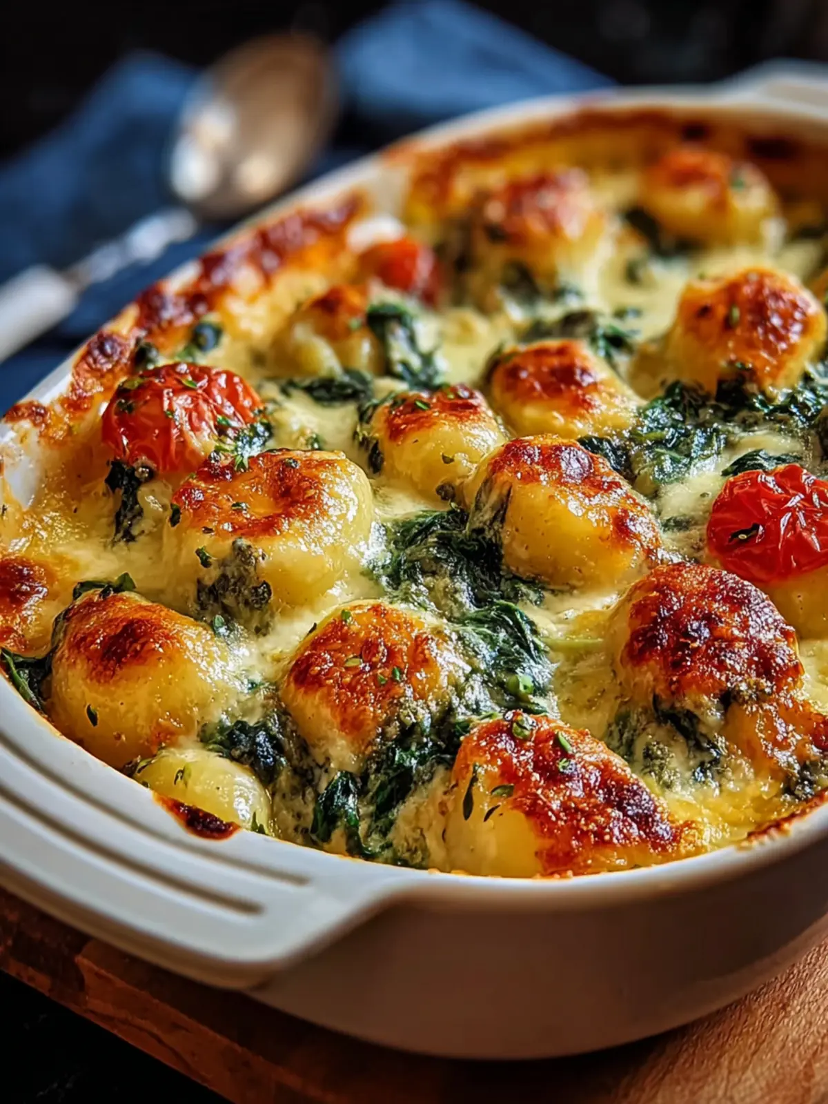 A delicious and creamy baked dish featuring gnocchi, fresh spinach, and ricotta cheese.