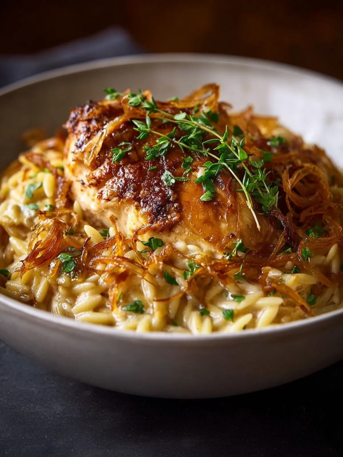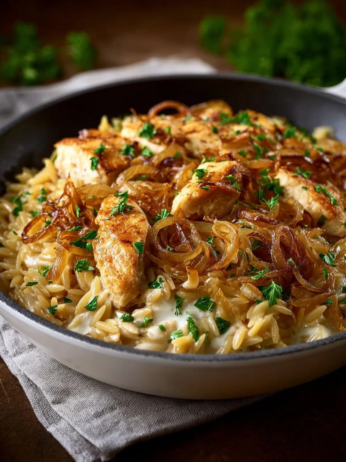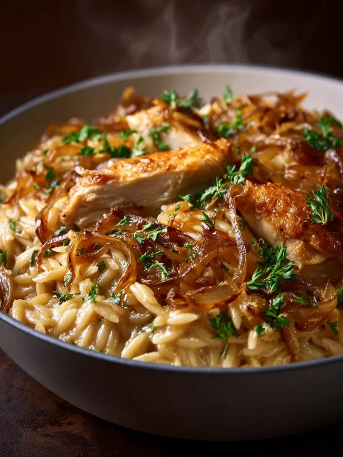 French Onion Chicken Orzo: Indulge in Creamy Comfort Tonight