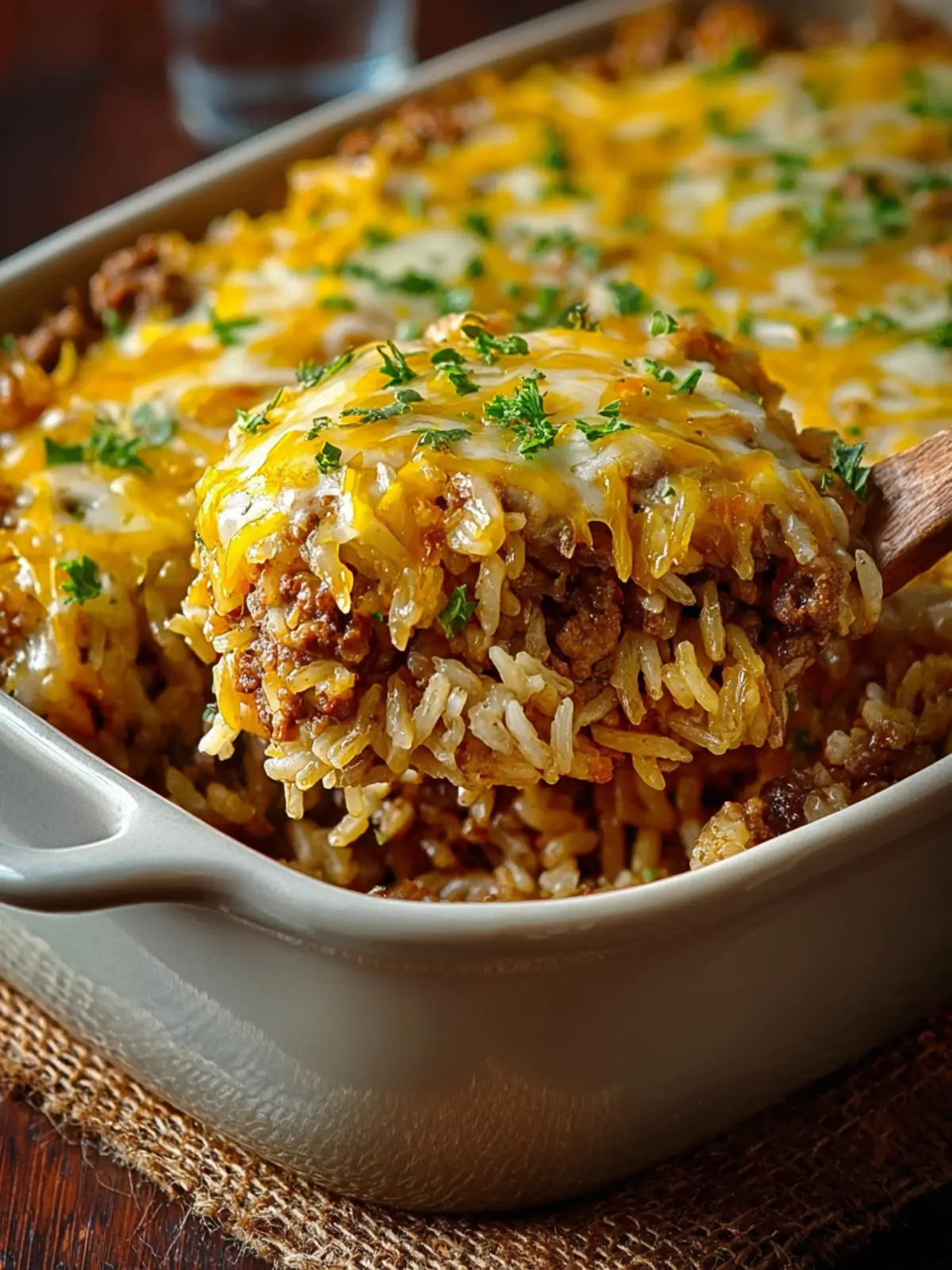 What makes this casserole truly delightful is its perfect balance of flavors and textures. You’ll love the rich, savory notes of French onion soup combined with tender, seasoned ground beef, and comforting rice. The gooey melted cheese on top seals the deal, creating a crispy golden crust that you simply can’t resist.