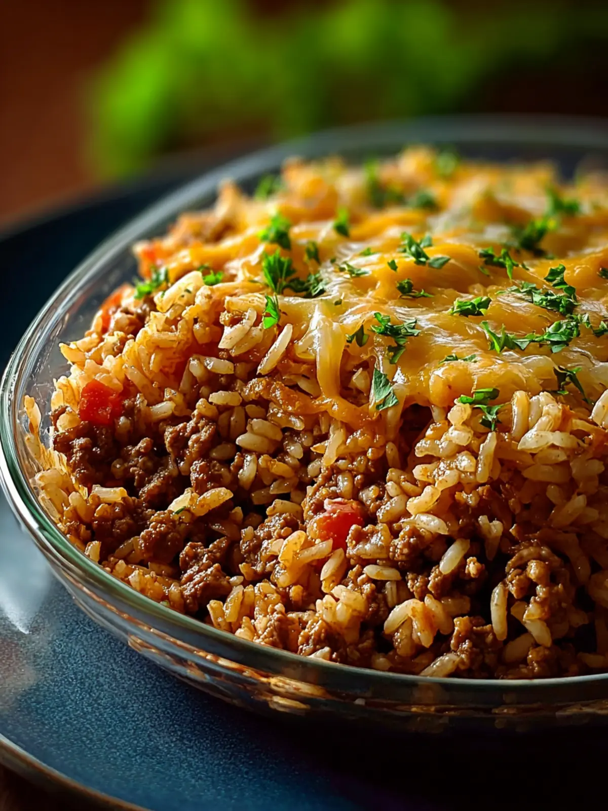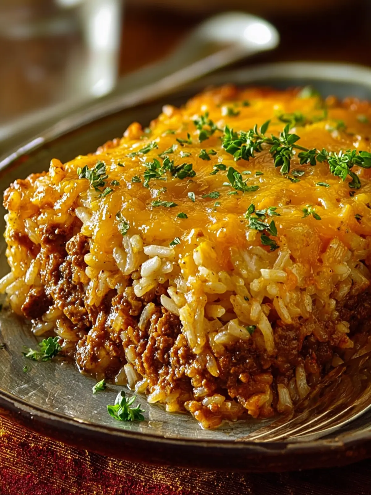 A comforting casserole dish made with ground beef, cheese, and rice.