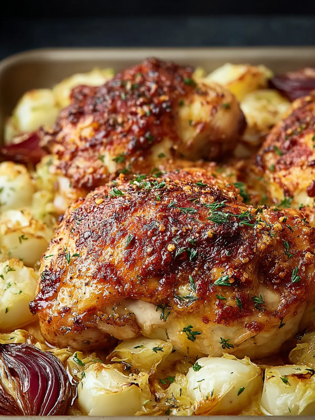 Irresistible Sheet-Pan Roast Chicken with Savory Mustard Cabbage