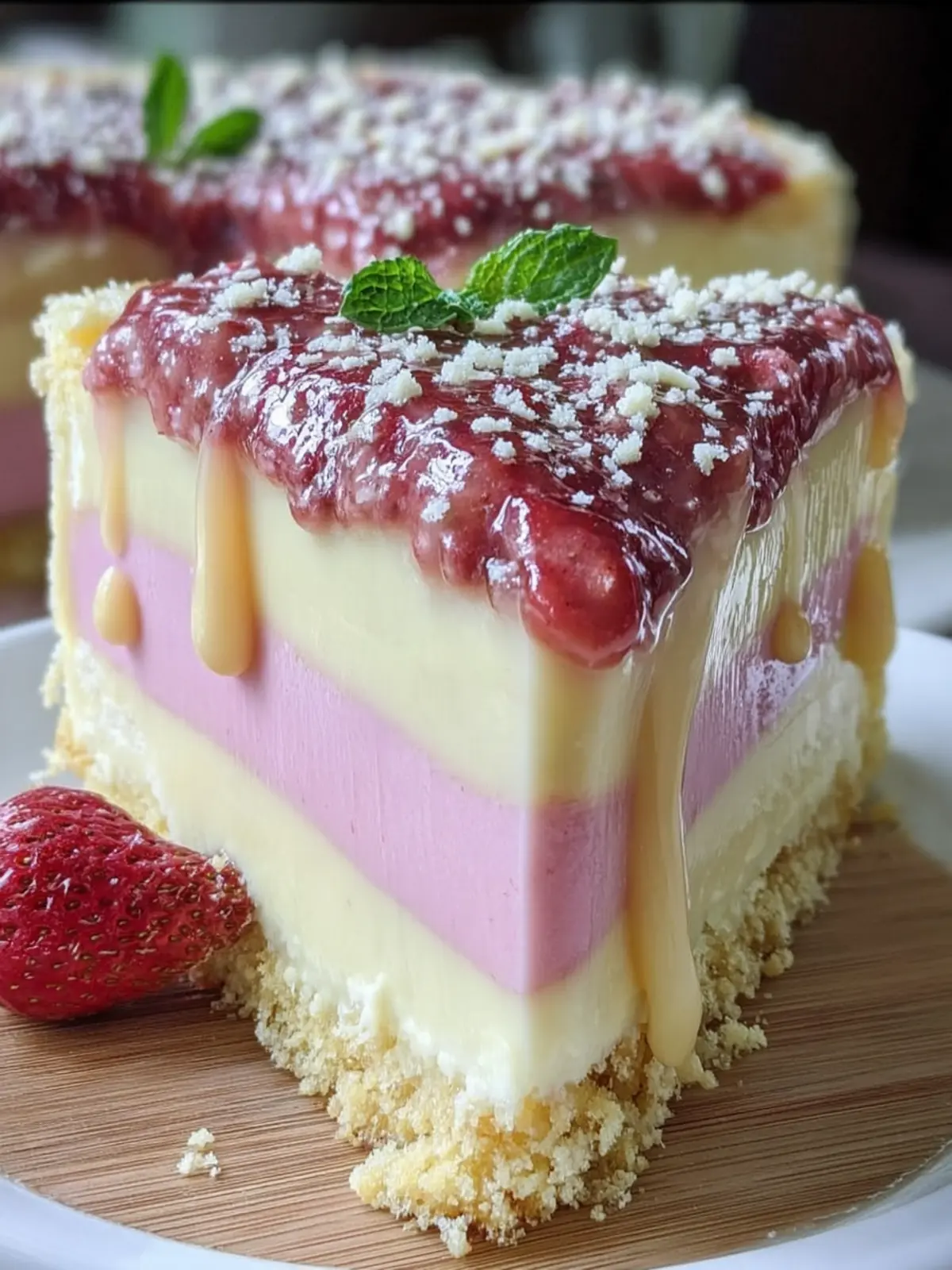 4. Assembling the Cake: Once the strawberry layer is added, refrigerate the entire cake for at least 4 hours or until fully set.