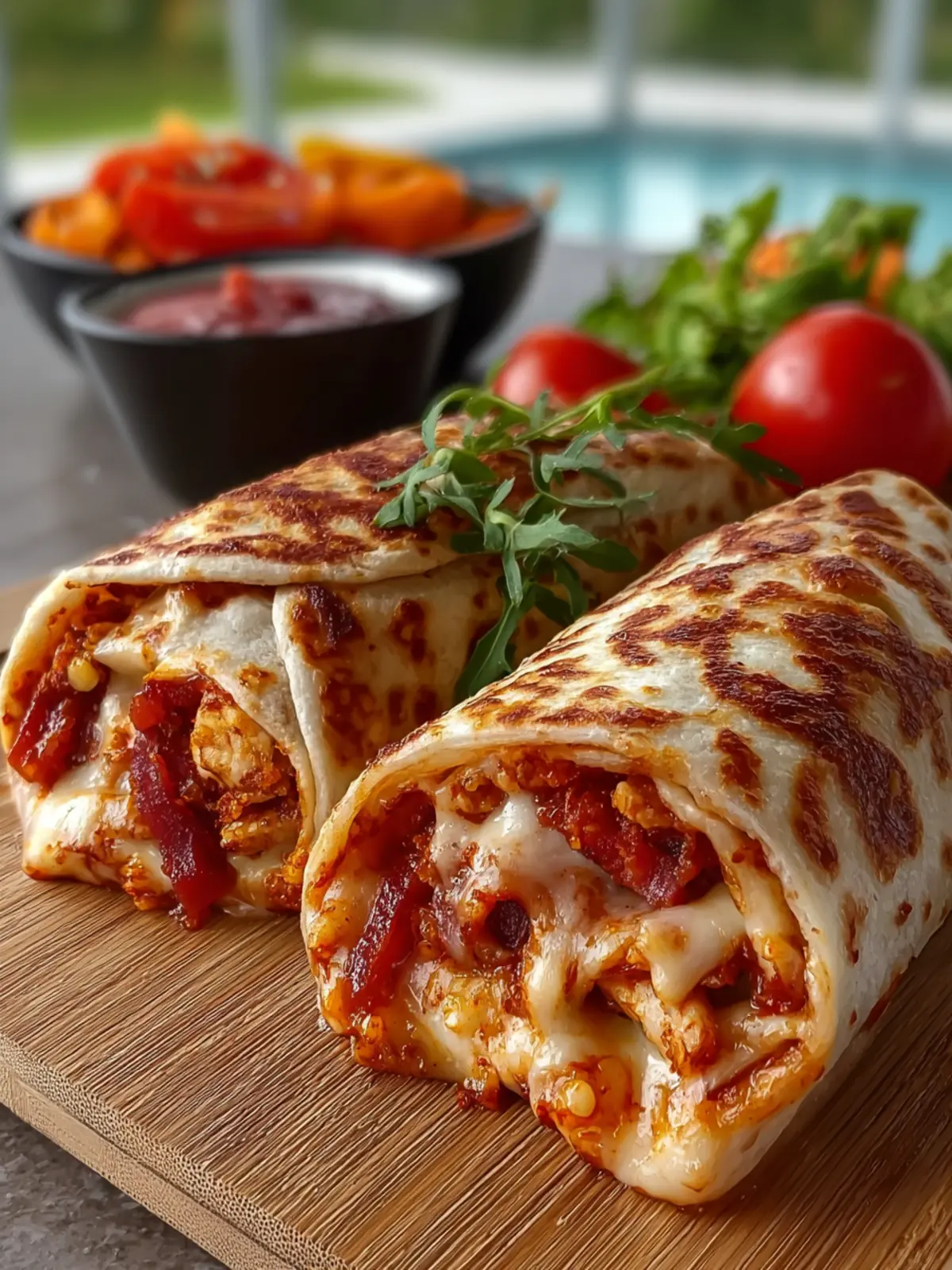 Serve your pizza burritos with a vibrant side salad or crunchy coleslaw to balance the heartiness. Alternatively, some crispy potato wedges or sweet potato fries can make for satisfying accompaniments, presenting a wonderful mix of textures and tastes.