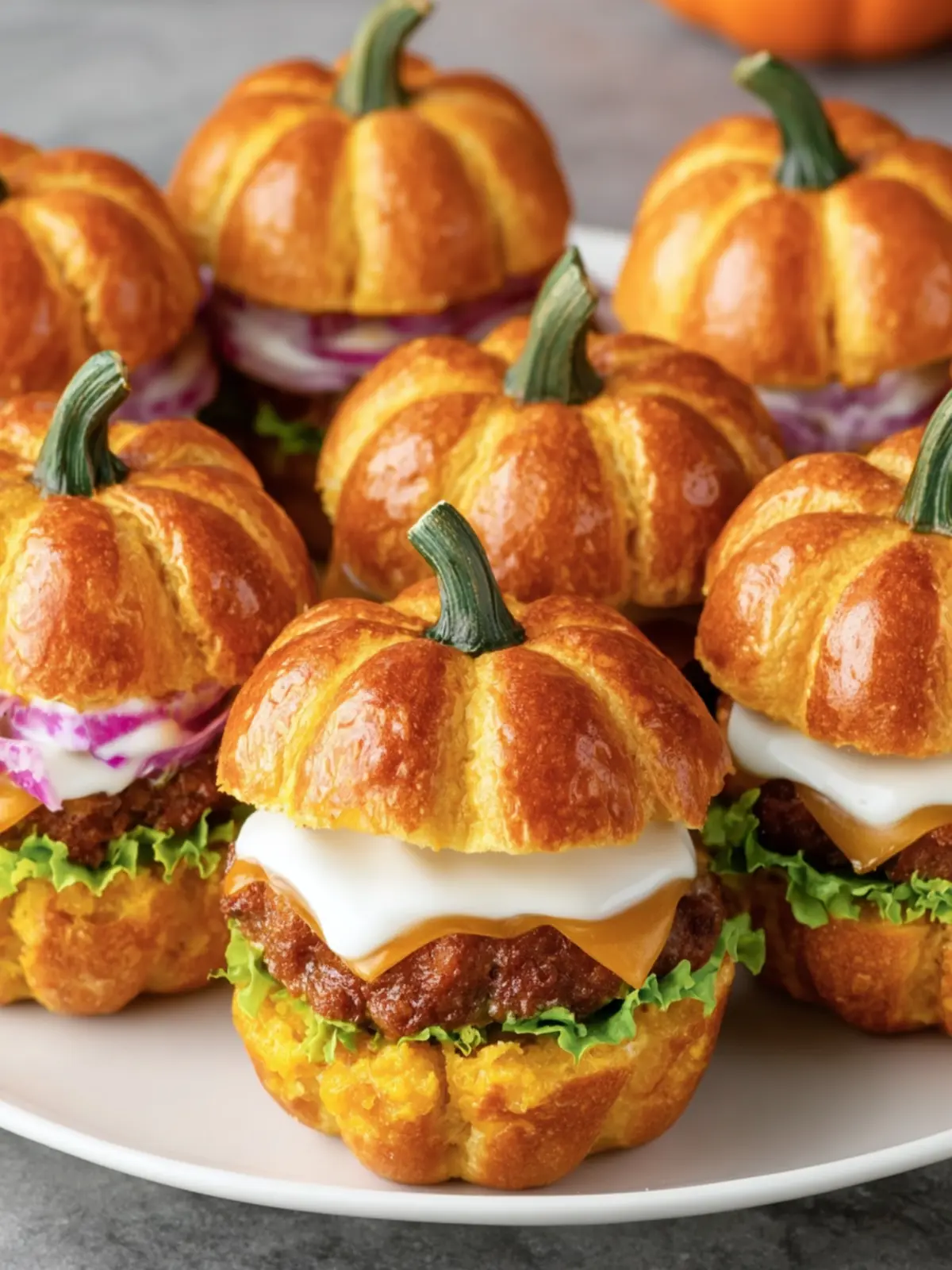 Pumpkin-Shaped Slider Buns: The star of the show! These are either custom-made or purchased from your local bakery. Their unique shape adds a playful twist, making every bite visually appealing and fun.