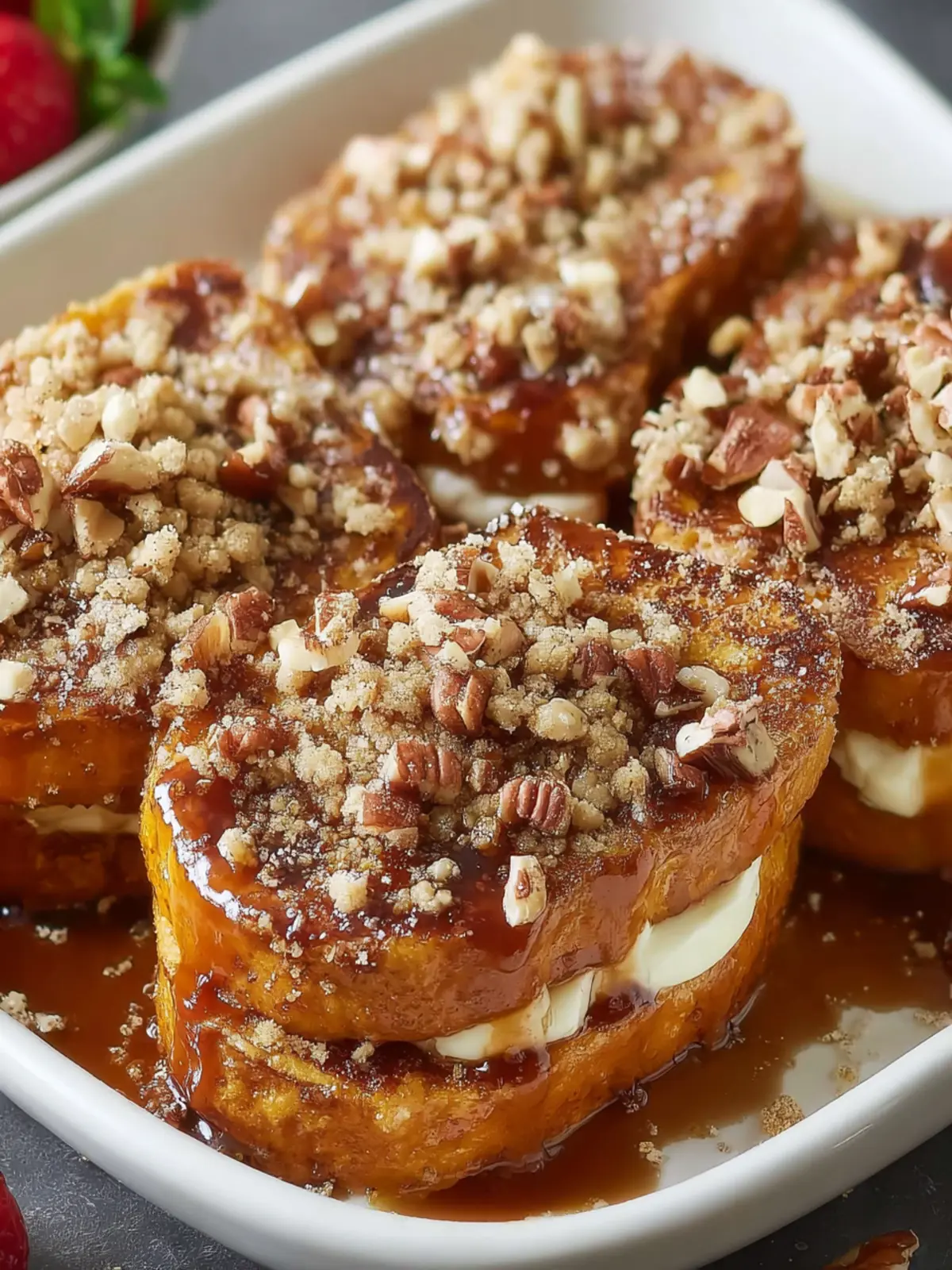 • Pecans: Chopped pecans in the crumble topping offer a satisfying crunch and nutty flavor, perfectly balancing the softness of the stuffed French toast.