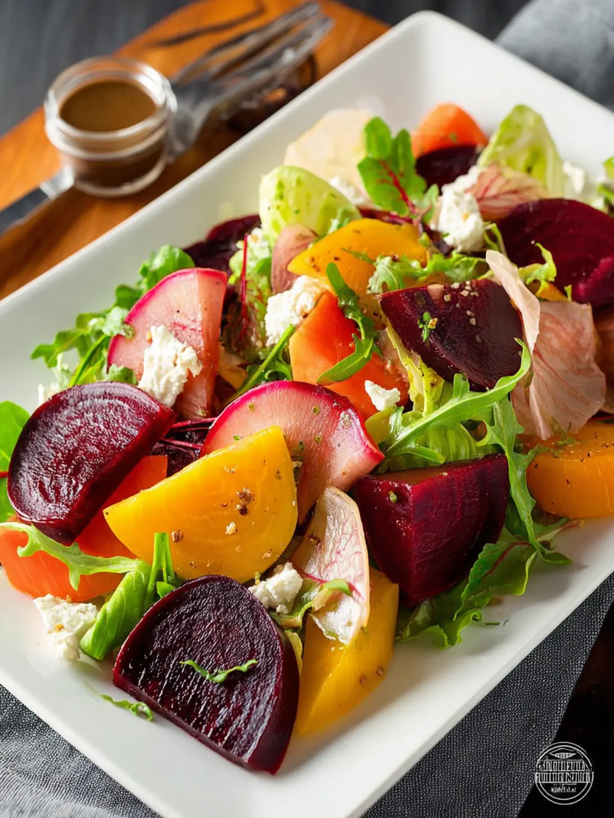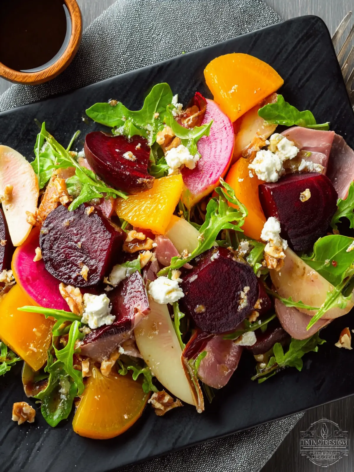 • Visual Appeal: The vibrant colors of this salad—from the deep purple of the beets to the fresh green of the arugula—transform a simple plate into a work of art. It’s a feast for the eyes, making it perfect for impressing guests or simply enjoying a moment of culinary creativity.
