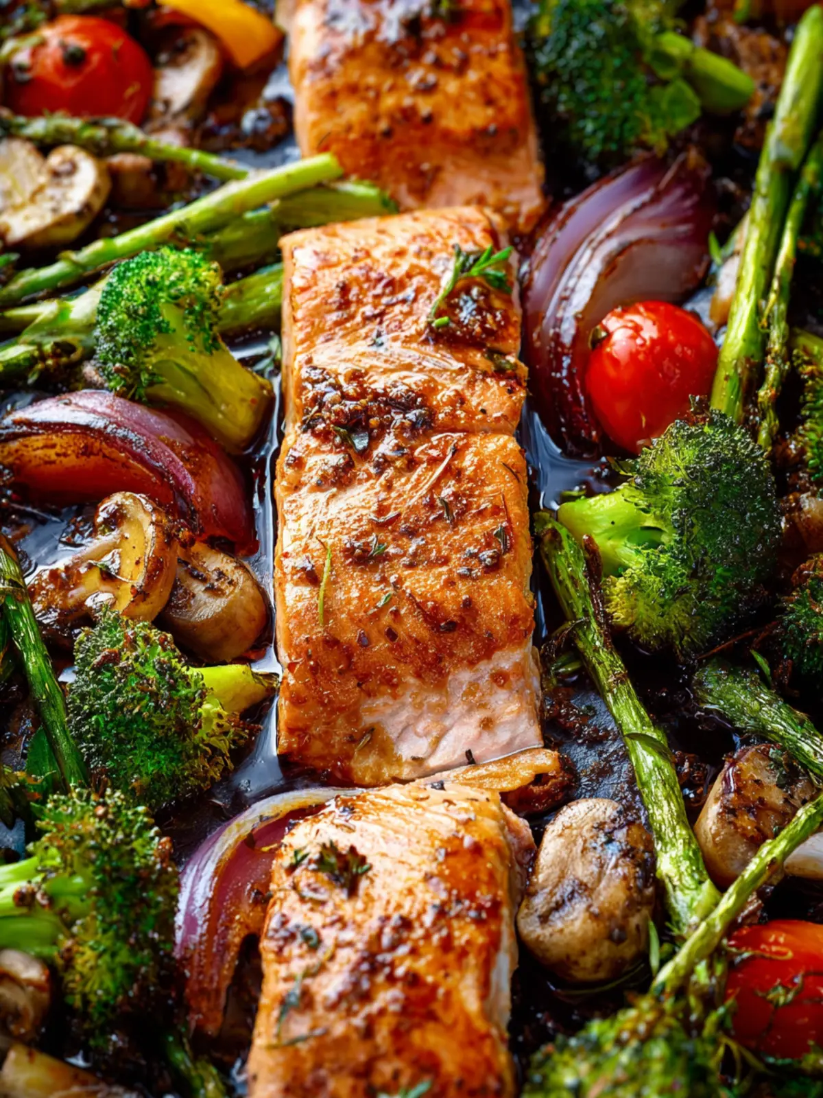 Vegetables: A colorful mix of vegetables like asparagus, bell peppers, and cherry tomatoes brighten up the dish both visually and nutritionally. Feel free to swap in your favorites—just keep the textures in mind so they cook evenly.