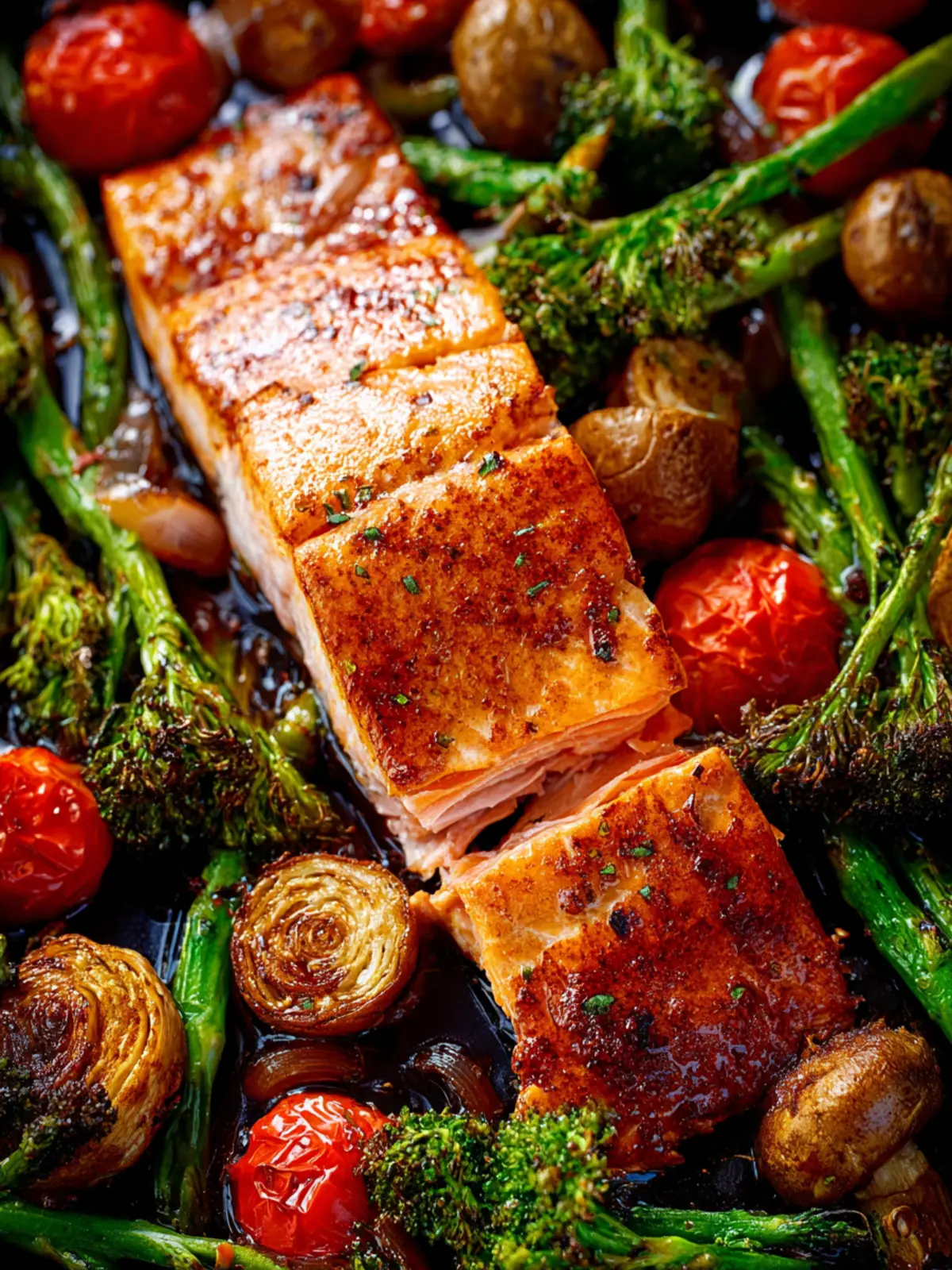 Balanced Nutrition: This dish is packed with protein from the salmon and a variety of vitamins and minerals from the colorful vegetables. Eating well has never been easier or more delicious.